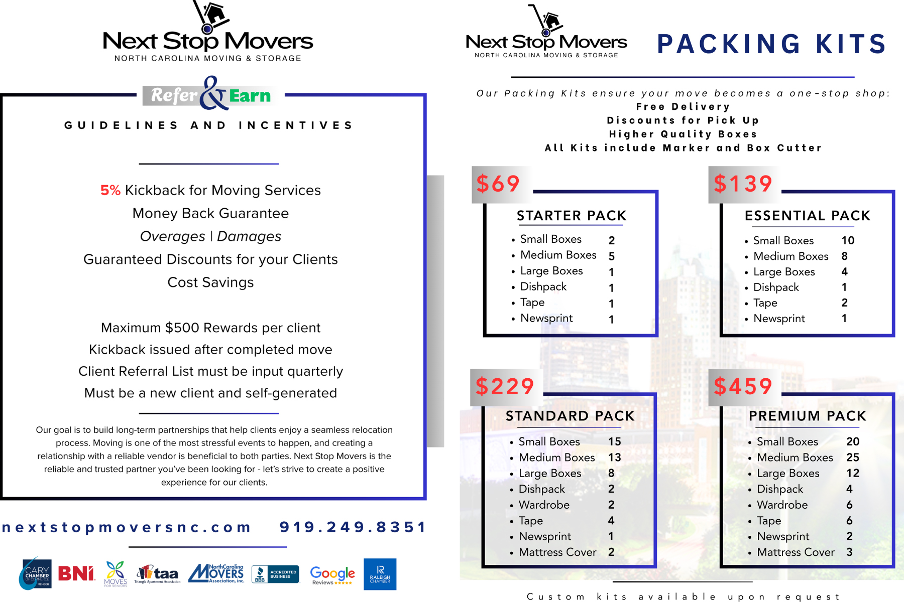 Whether your clients are settling into their new Raleigh home or preparing to move out, Next Stop Movers is offering a collection of perks designed to make the entire process easier, smoother, and more cost-effective.