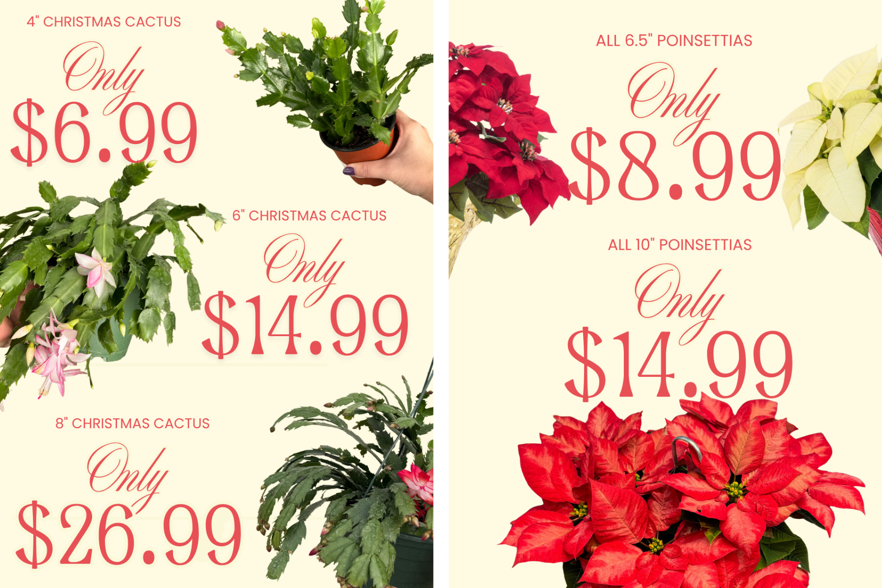 Atlantic Gardening is excited to offer locally grown poinsettias this year at unbeatable pricing, along with beautiful Christmas Cactuses perfect for gifting: